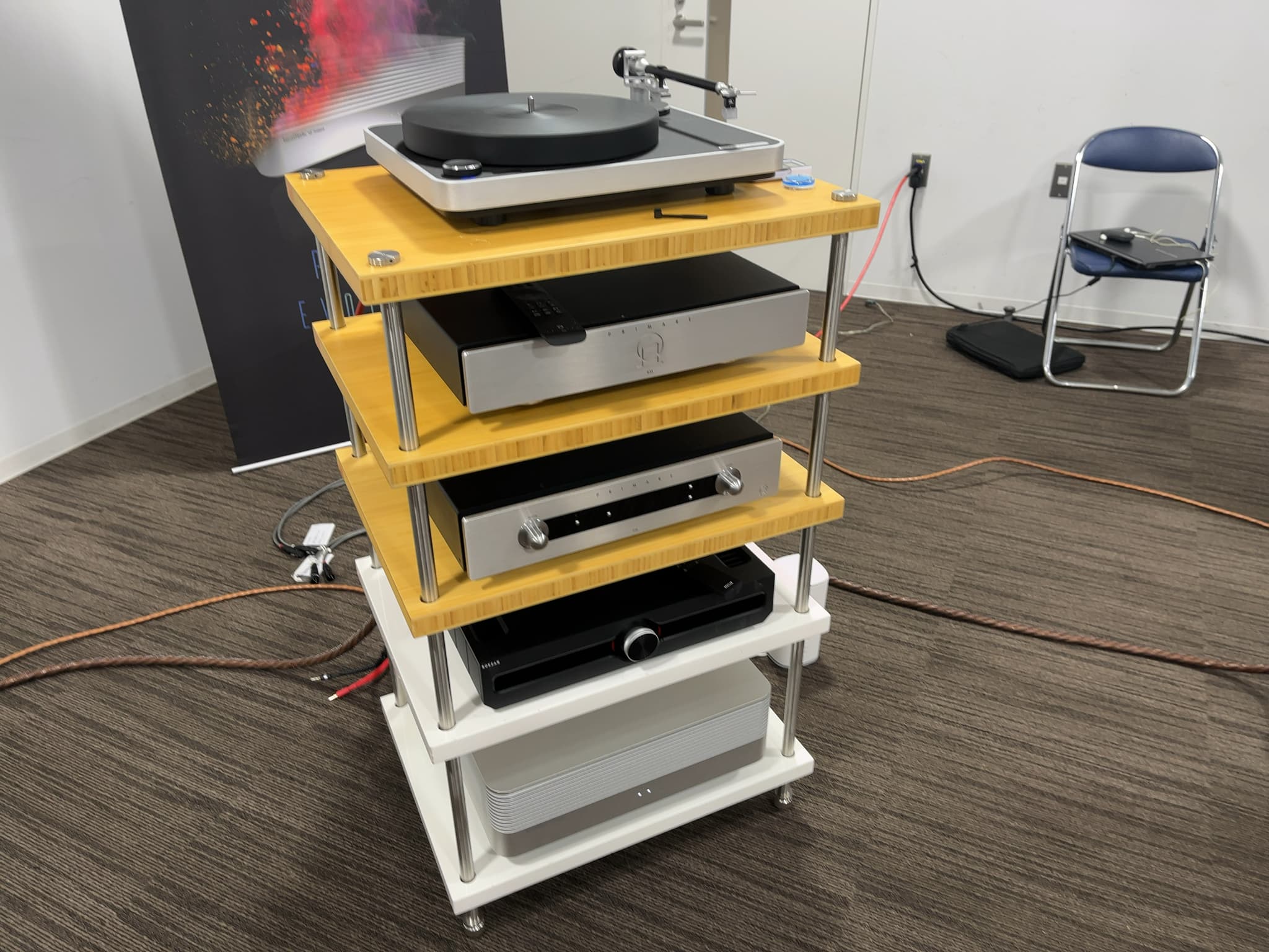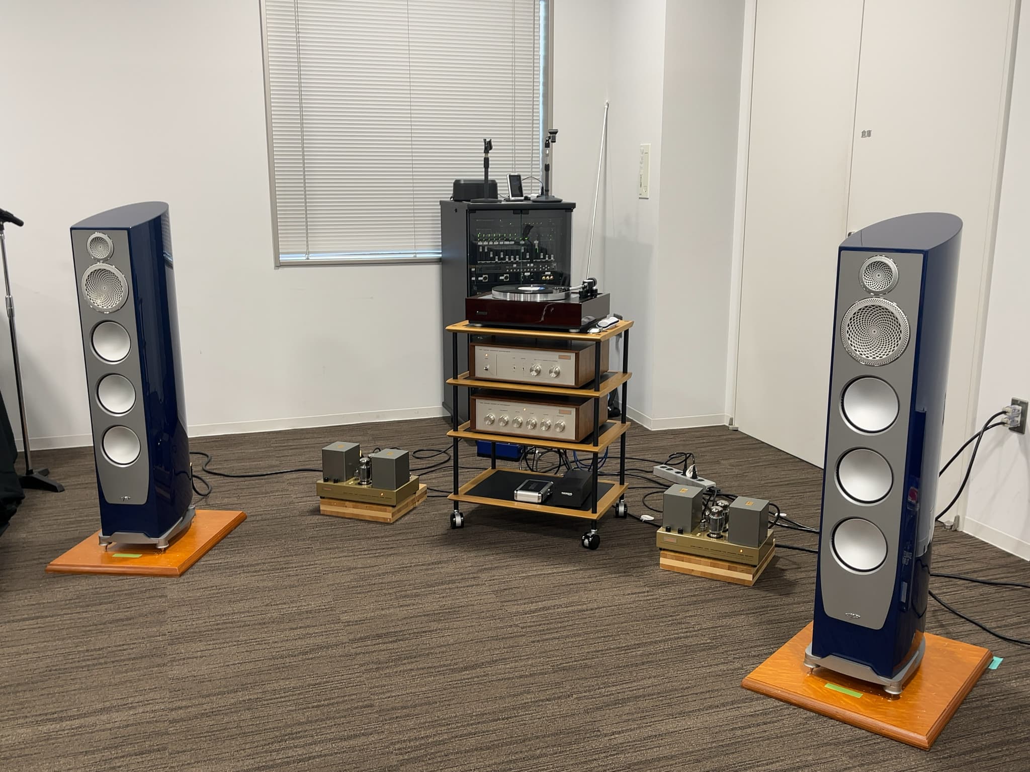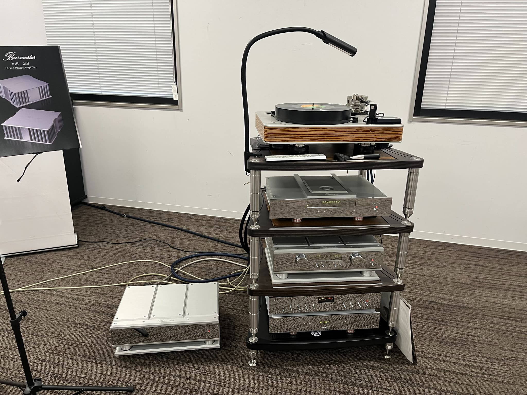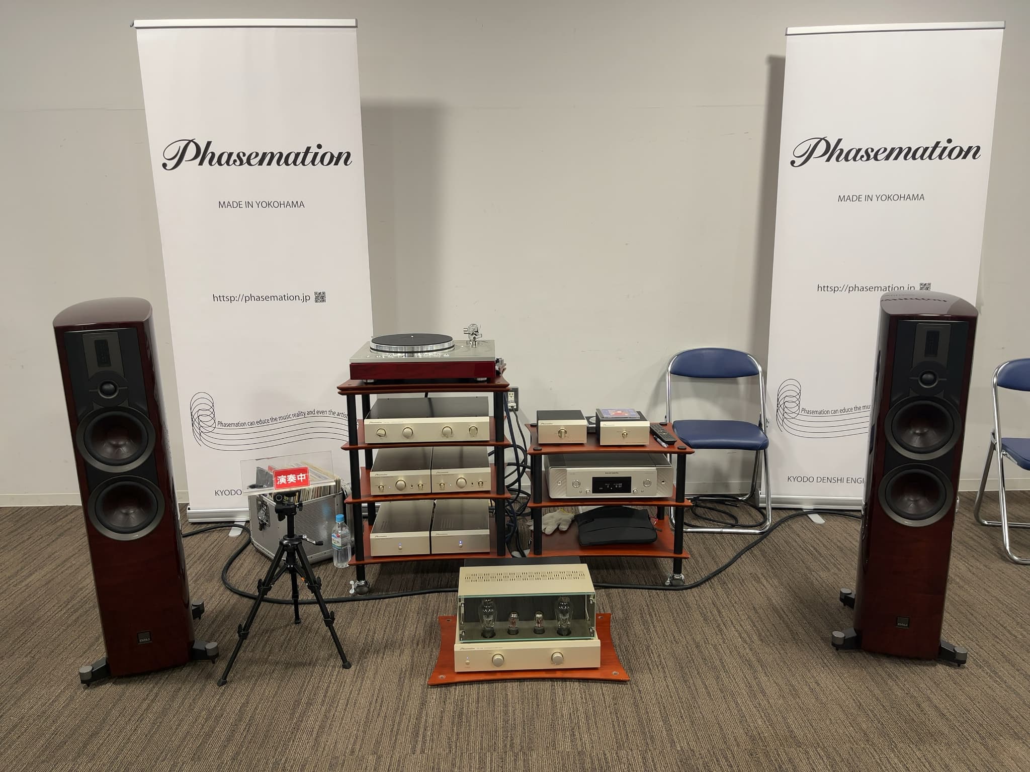 同社のオーディオブランドであるPhasemation(フェーズメーション)製品で構成されたシステムを展示。真空管プリメインアンプ『SA-1500』や、ライントランス『LT-1000』、フォノアンプ『EA-1200』といった注目商品と、『PP-5000』等のMCカートリッジがございました。試聴会ではアナログレコードの再生をメインで行い、真空管アンプとの極上サウンドを楽しむことができました。
