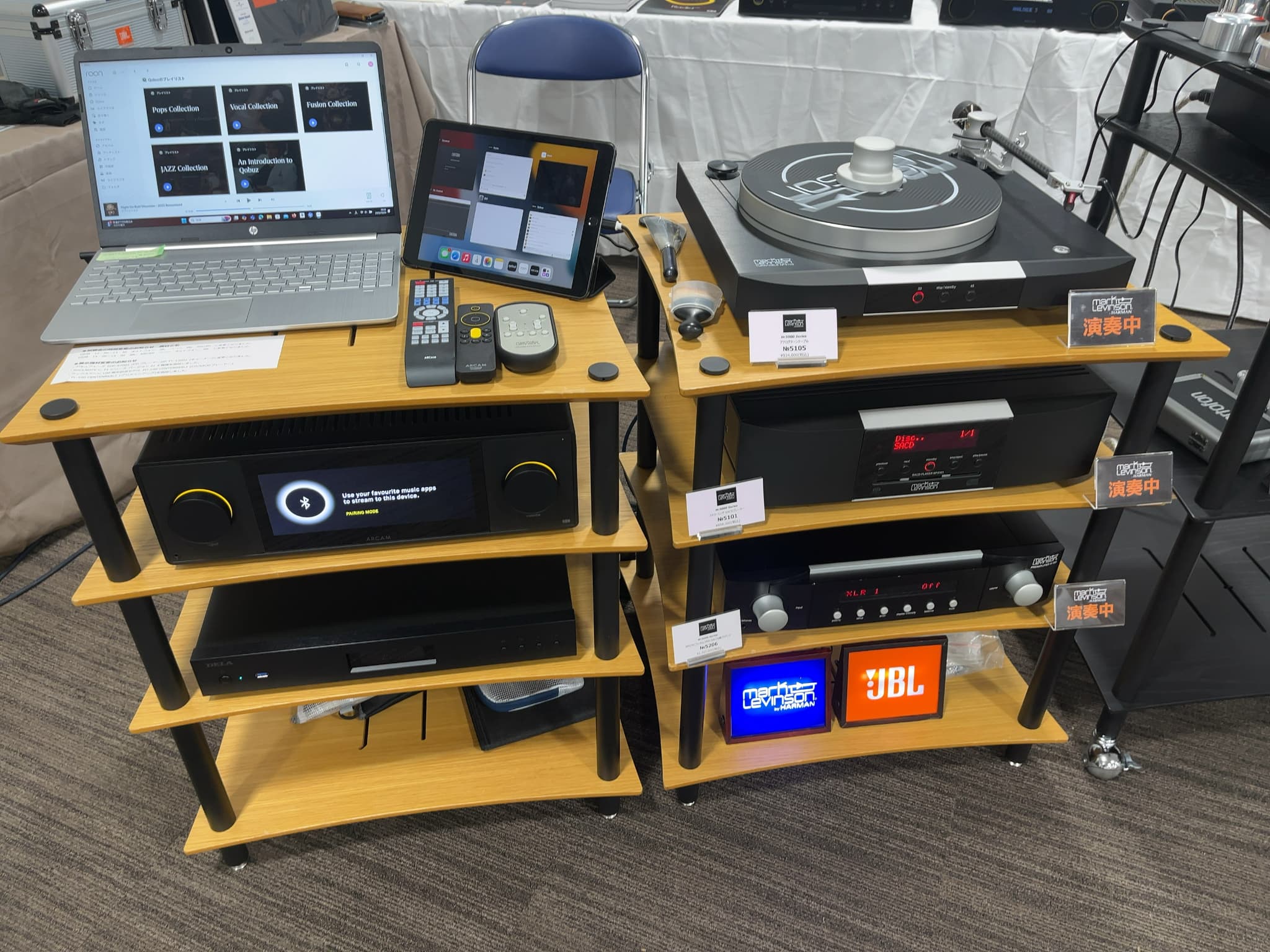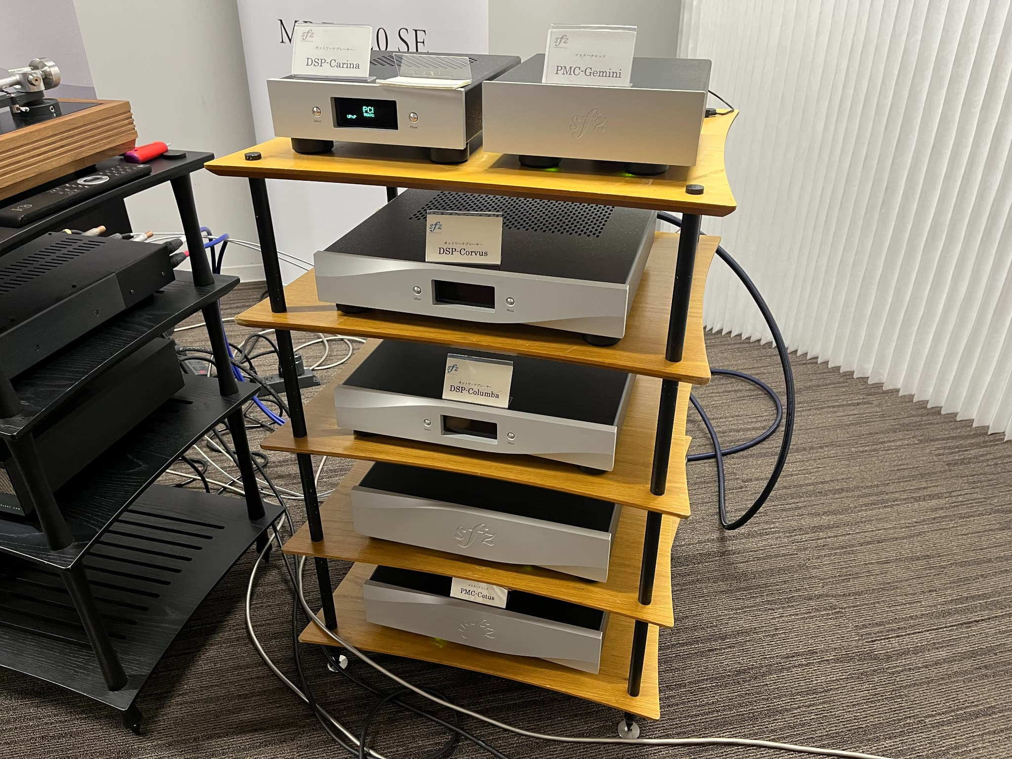 Reziere(リジェール)ではSFORZATO(スフォルツァ-ト)機器で構成されたシステムを展示。『DSP-Columba』『DSP-Corvis』『DSP-Carina』の3機種のネットワークプレーヤーを使用し、Qobuz、amazon musicといったストリーミングサービスの試聴を行いました。ネットワークオーディオを楽しむ方が増えてきているので、興味を持たれた方も多くいらっしゃいました!!
