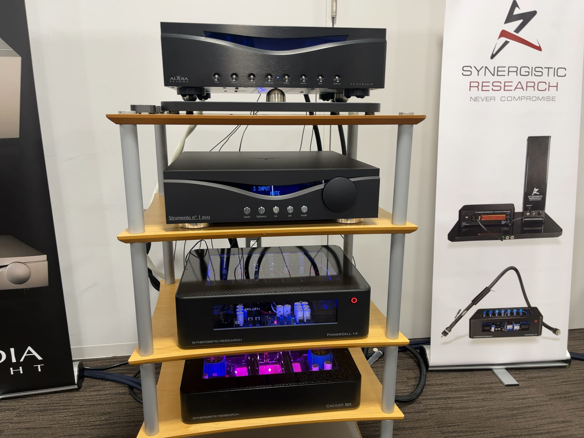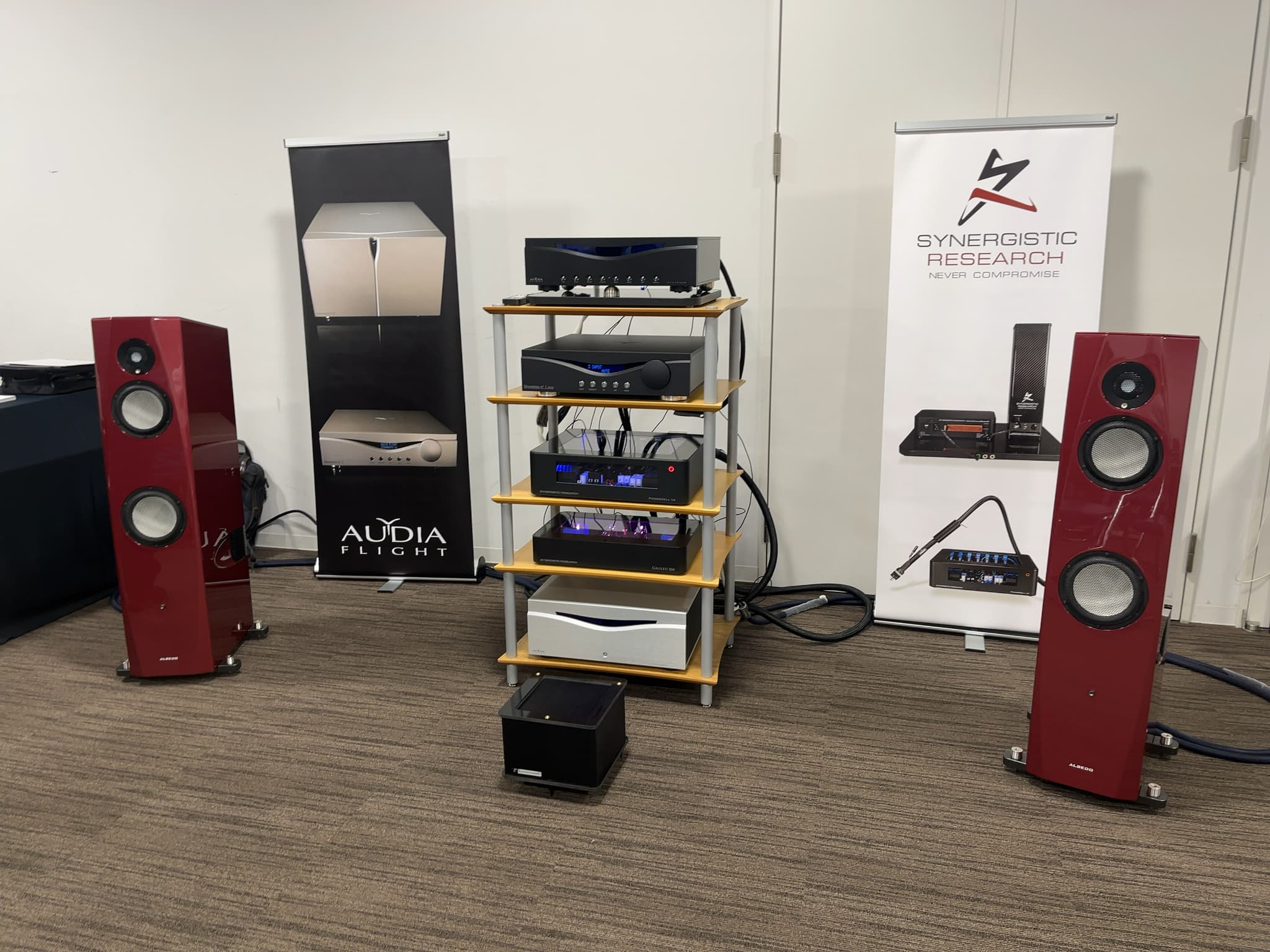 アイレックスのブースでは、様々な海外ブランド製品を展示。 注目商品はALBEDO(アルベド)の新スピーカー『Achema』と、 AUDIA FLIGHT(オーディアフライト)の新プリアンプ『Strumento n1 evo』。その他、Synergistic Research(シナジスティックリサーチ)初のミュージックストリーミングサーバー『Voodoo』等も展示。内部が照明で照らされているので、つい見惚れてしまいました!!(笑)