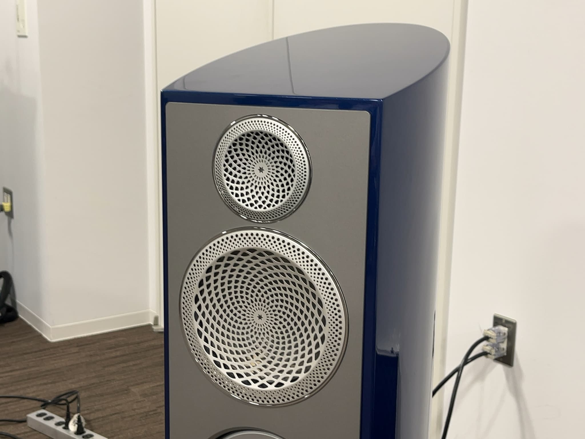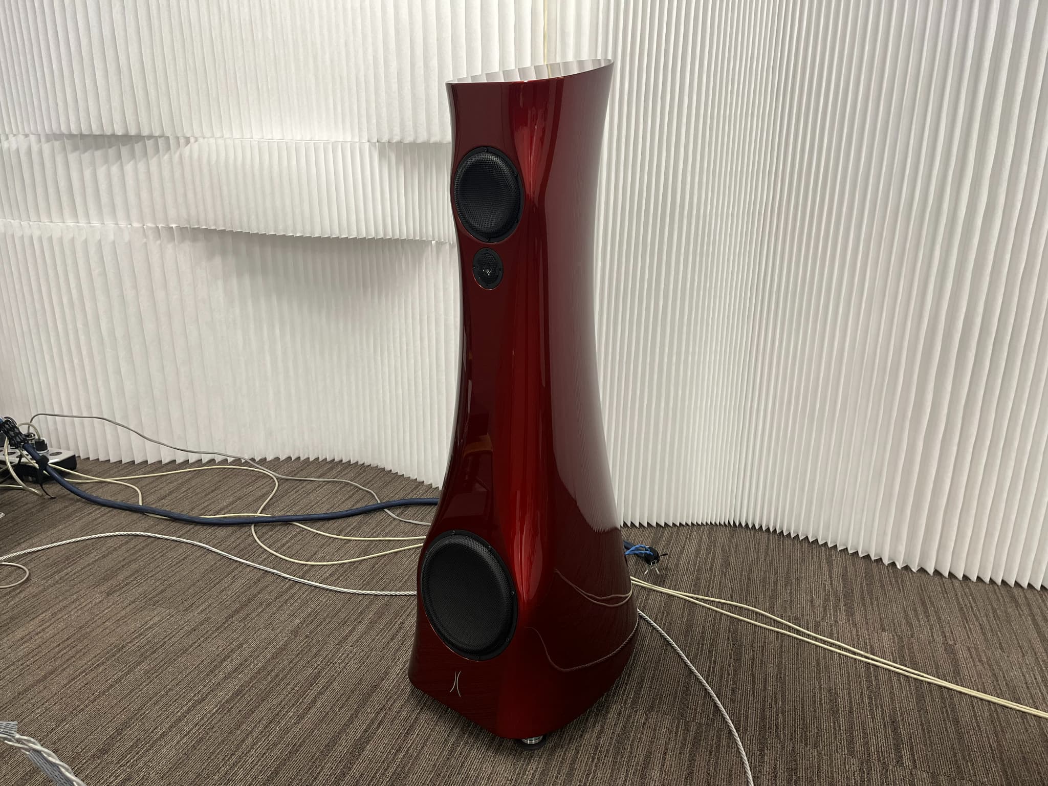 TAD(タッド)のブースでは、新スピーカー『TAD-E1AX-GW』を展示。オーディオショウの為に新色の“グロッシーホワイト”(来年1月発売予定)を持ってきていただきました!!