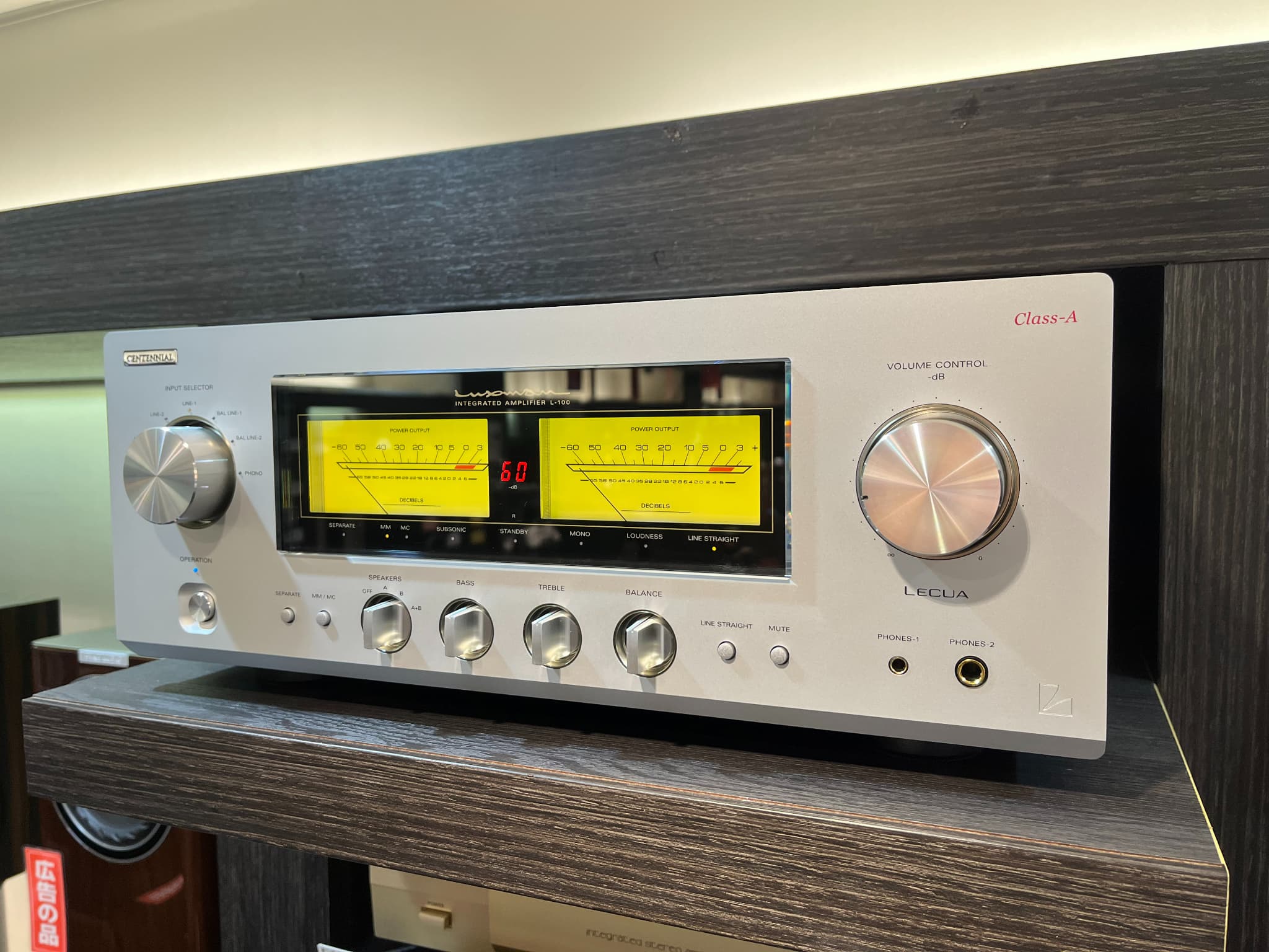 3階に老舗オーディオメーカーLUXMAN(ラックスマン)が創業100周年を記念して発売した純A級プリメインアンプ『L-100 CENTENNIAL』を展示中。