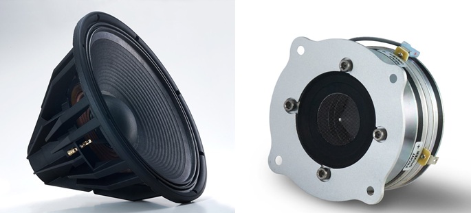特徴は、新開発の15インチ(380mm)ウーファーユニット「2219Nd-1」と、デュアルボイスコイル&ネオジウムモーター(磁気回路)を備える3インチ(約76mm)のD2コンプレッションドライバー「D2830B」を搭載していること。