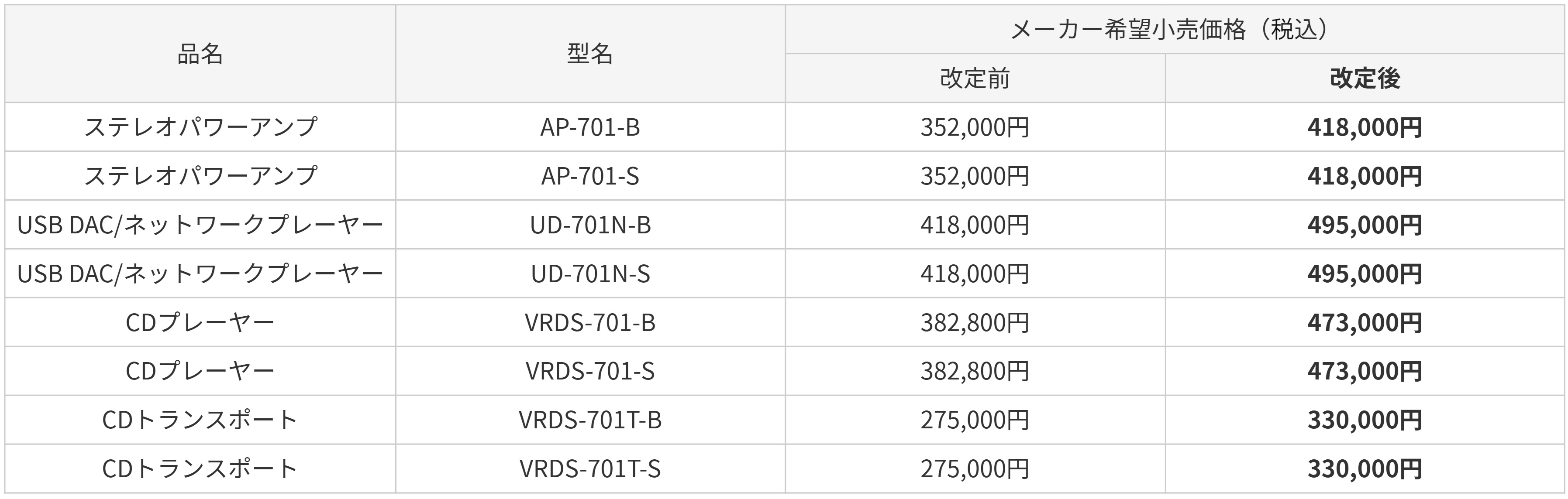 Triode・TEAC ・ortofon 価格改定のお知らせ