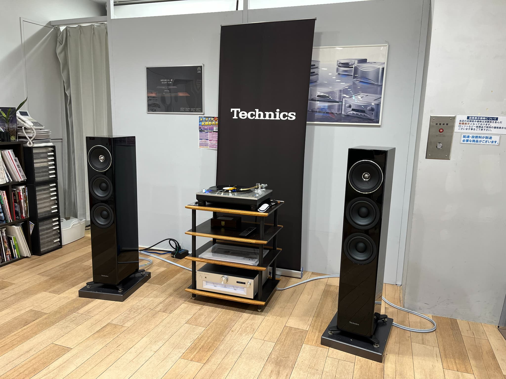 Technics(テクニクス)では数量限定モデルの新アナログプレーヤー『SL-1200GME』を中心としたシステムを展示。試聴会ではアナログレコードの再生を行い、スピーカーは『SB-G90M2』、プリメインアンプは『SU-G70M2』と、グランドクラスの機器を使用しておりました。