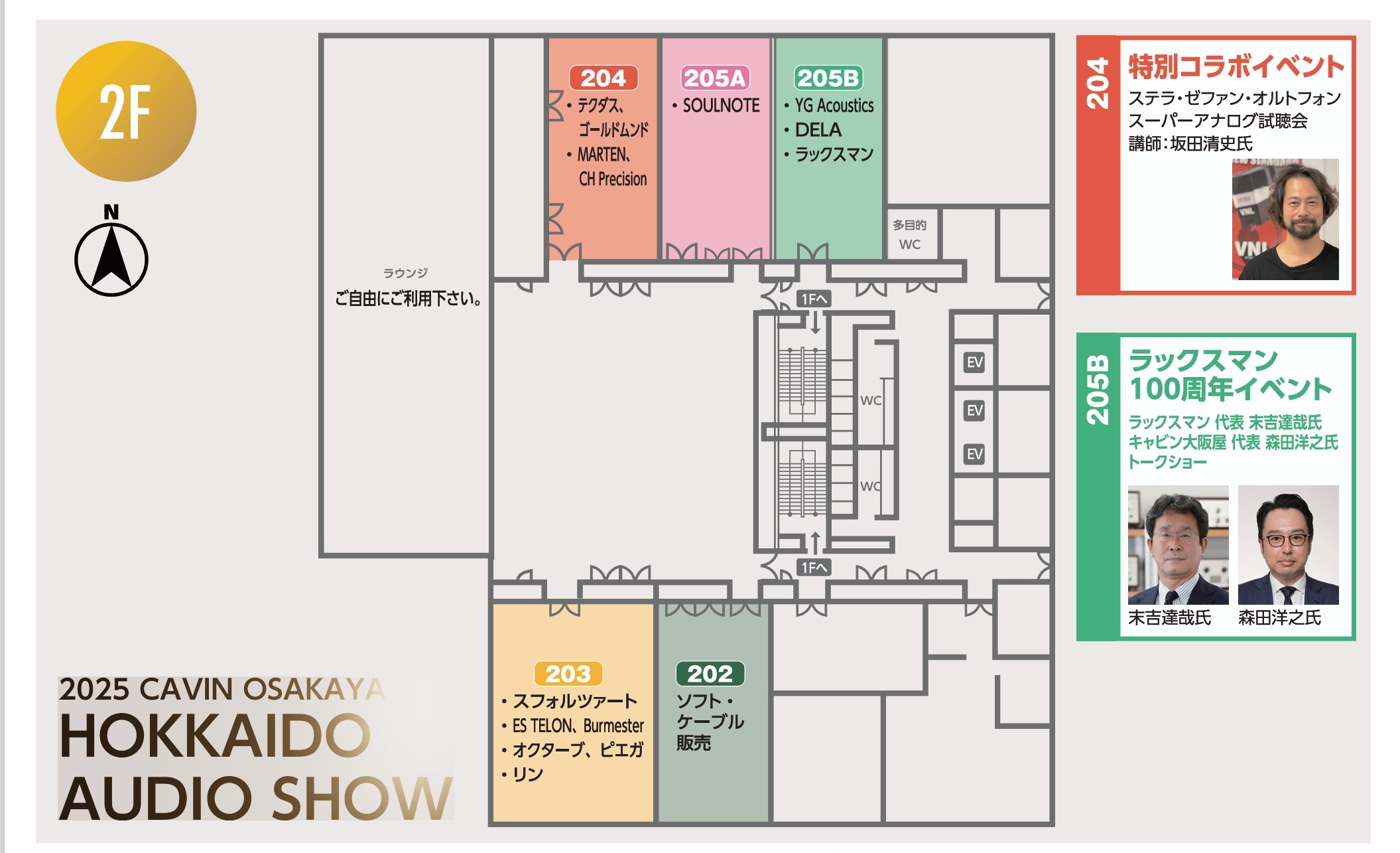 32社のオーディオメーカー・商社が参加し、各ブースにてアンプ・CDプレーヤー・スピーカー・オーディオアクセサリー等の展示・試聴会を実施。入場無料・入退場自由です。