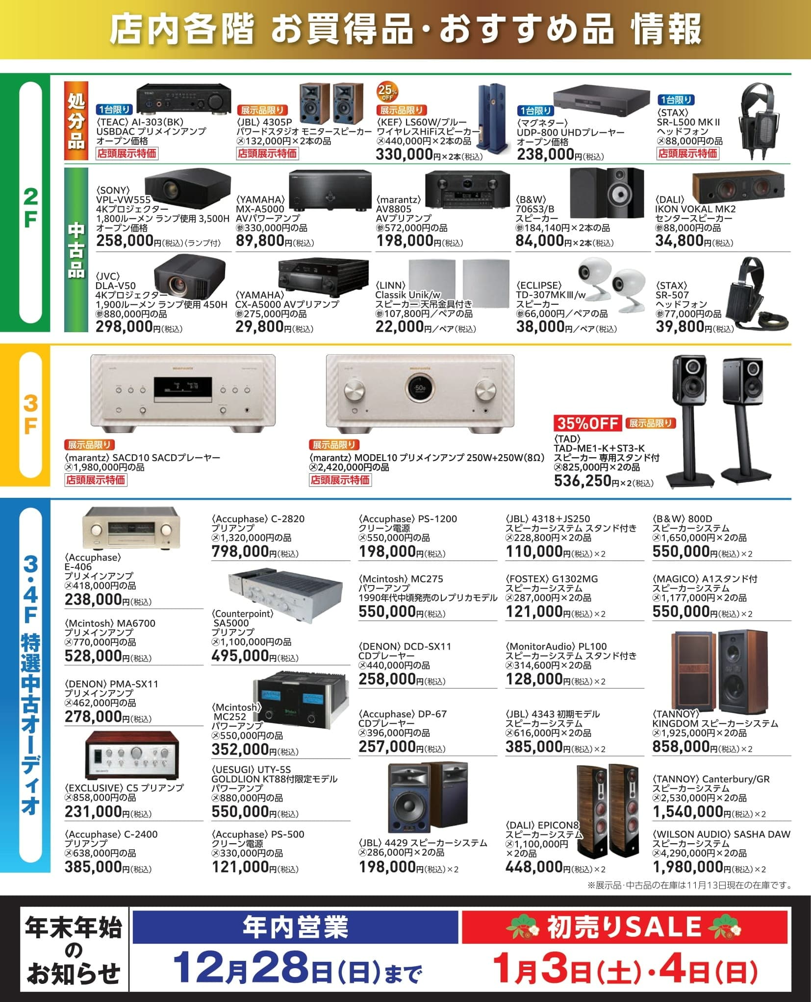 また、お買得な中古品、展示処分品も多数ご用意!!