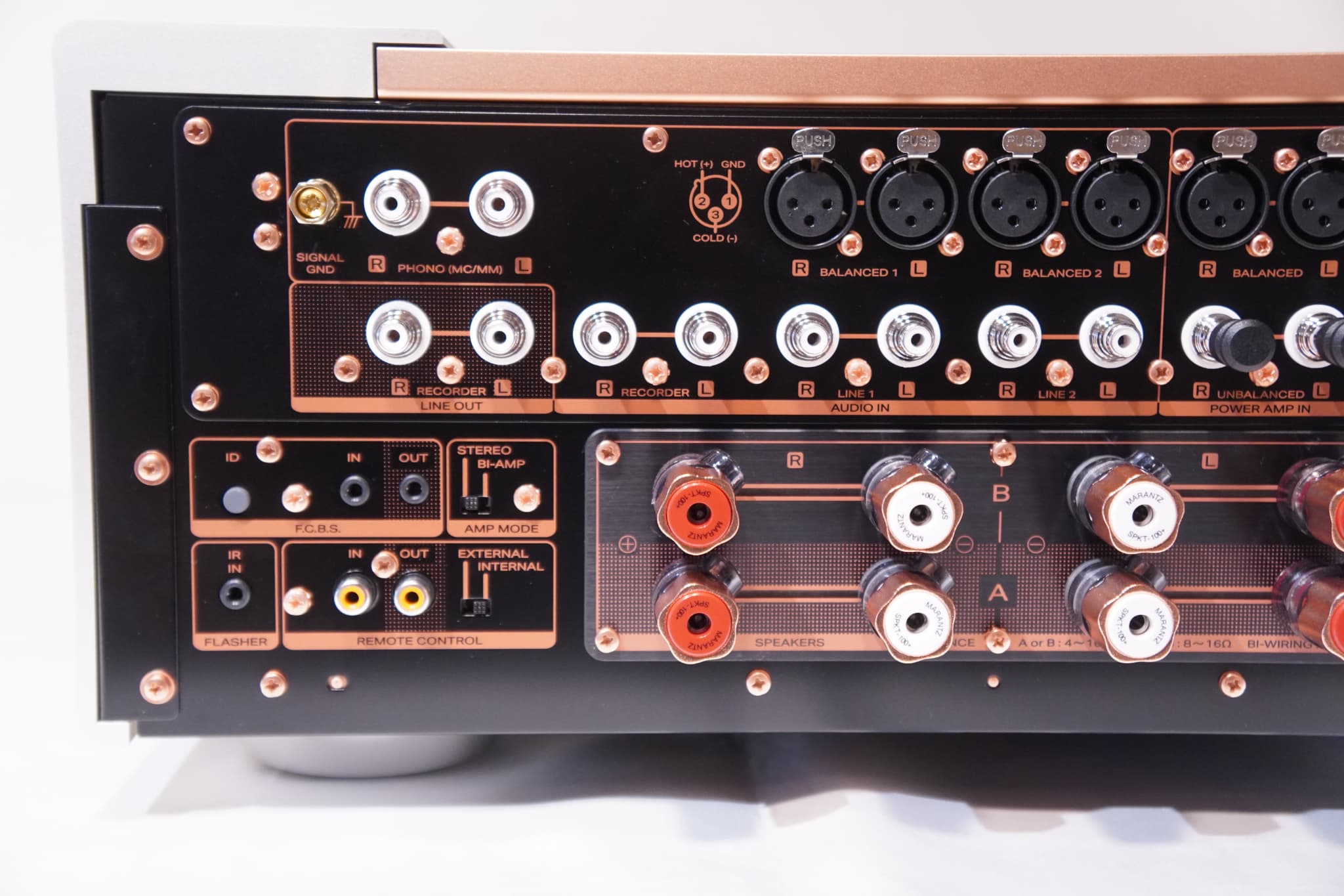 バランス × 2、アンバランス × 3、PHONO(MM / MC)× 1、 POWER AMP IN(バランス) × 1、 POWER AMP IN(アンバランス) × 1